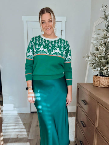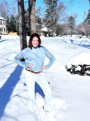 Love this sweater, pairs perfectly with a skirt and boots. The fit was true to size and I’m so glad that the cuffs don’t bunch like most sweaters seem to do.