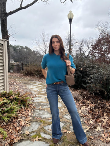 Great fall top. The teal color is such a nice fall color. Very easy to style. Style it with jeans or slacks. It’s a very versatile top. Very comfortable to wear.
