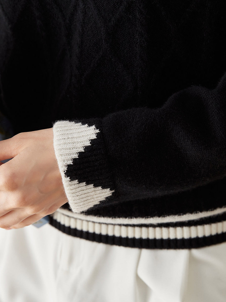 100% Cashmere Women's Contrast Jacquard Mock Neck Sweater