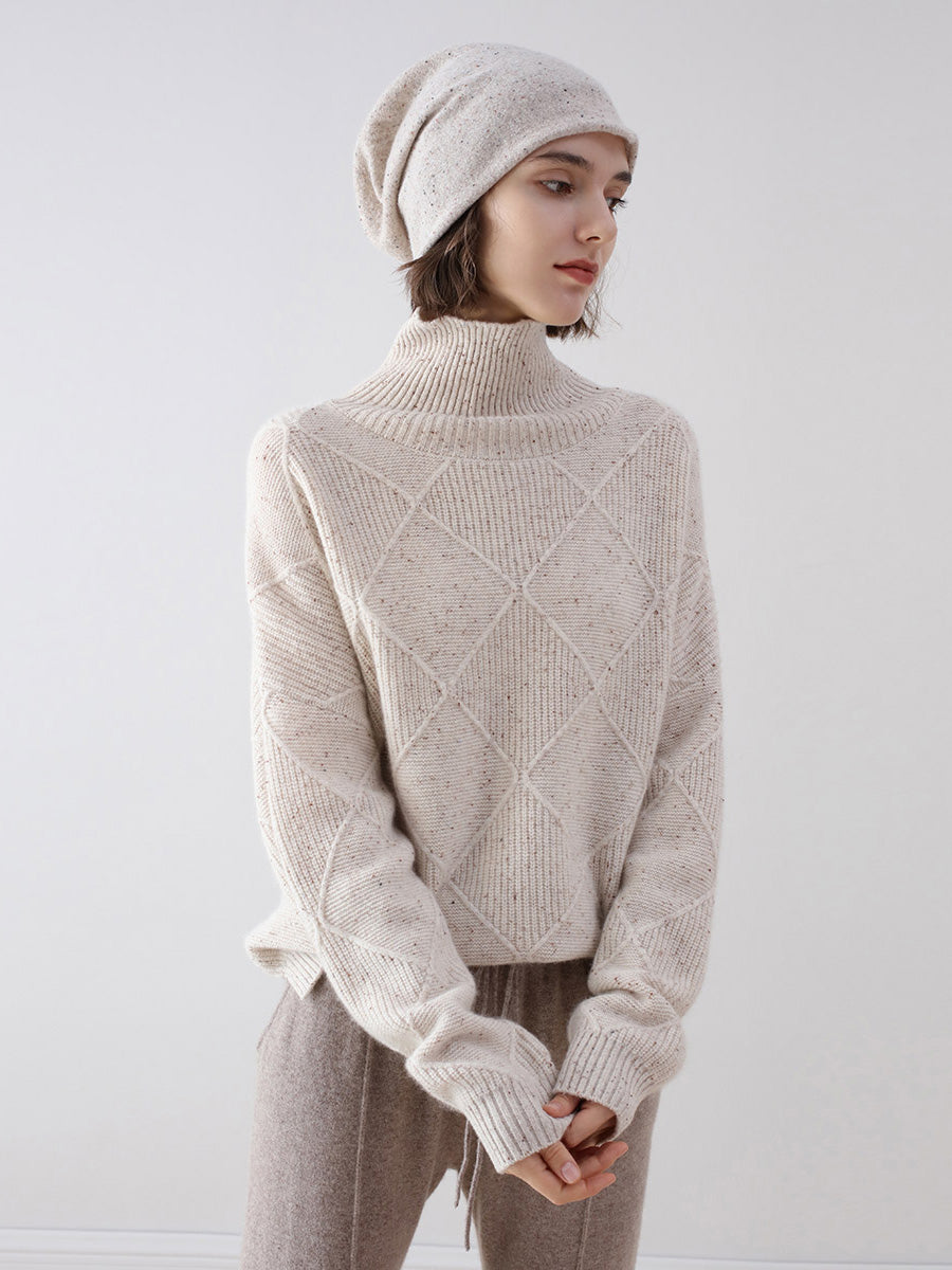 100% Cashmere Women's Diamond Knit Turtleneck Sweater