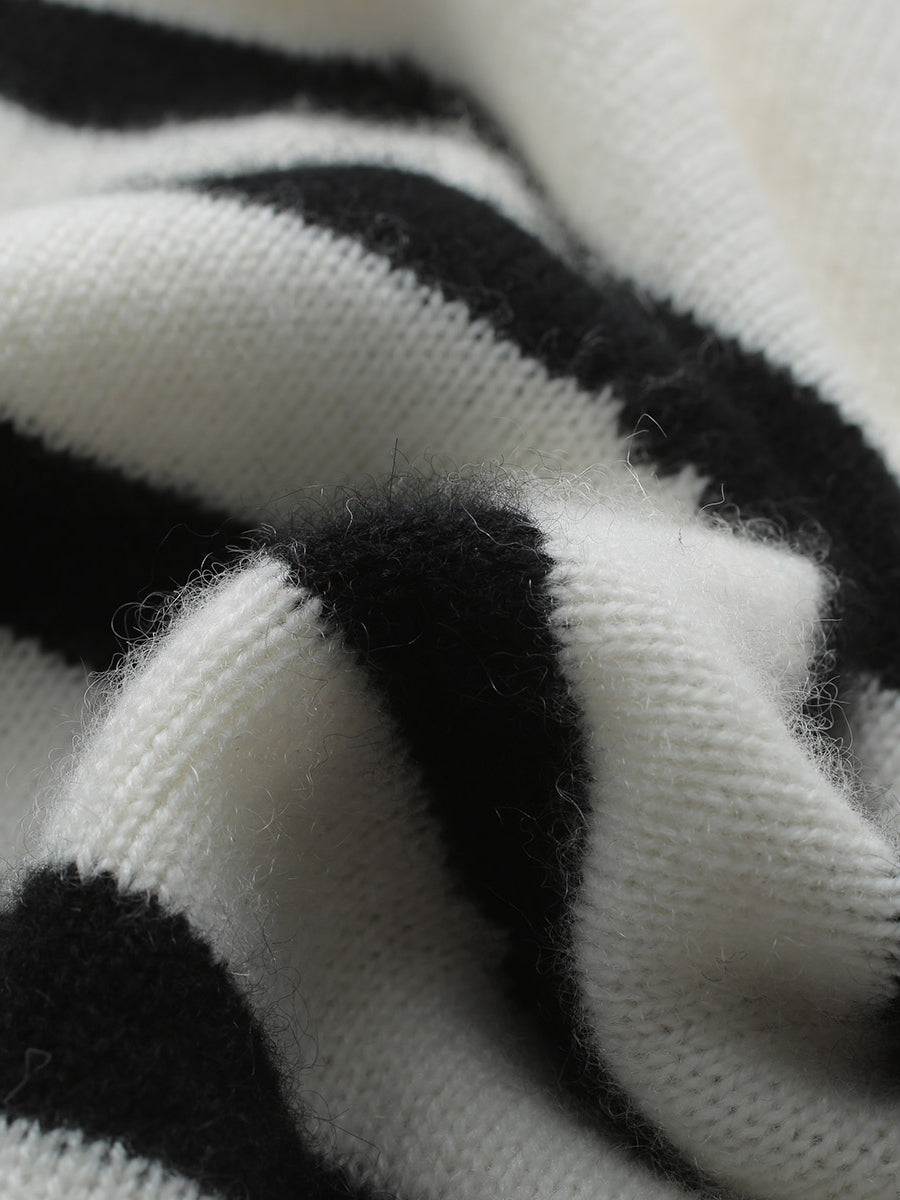 Elevate your casual wardrobe with our Chic Striped Half-Zip Knit Sweater. This stylish sweater combines classic black and white stripes with a modern half-zip design, offering both versatility and a timeless look. Crafted from high-quality knit cashmere, it ensures comfort and warmth, perfect for transitioning through the seasons.