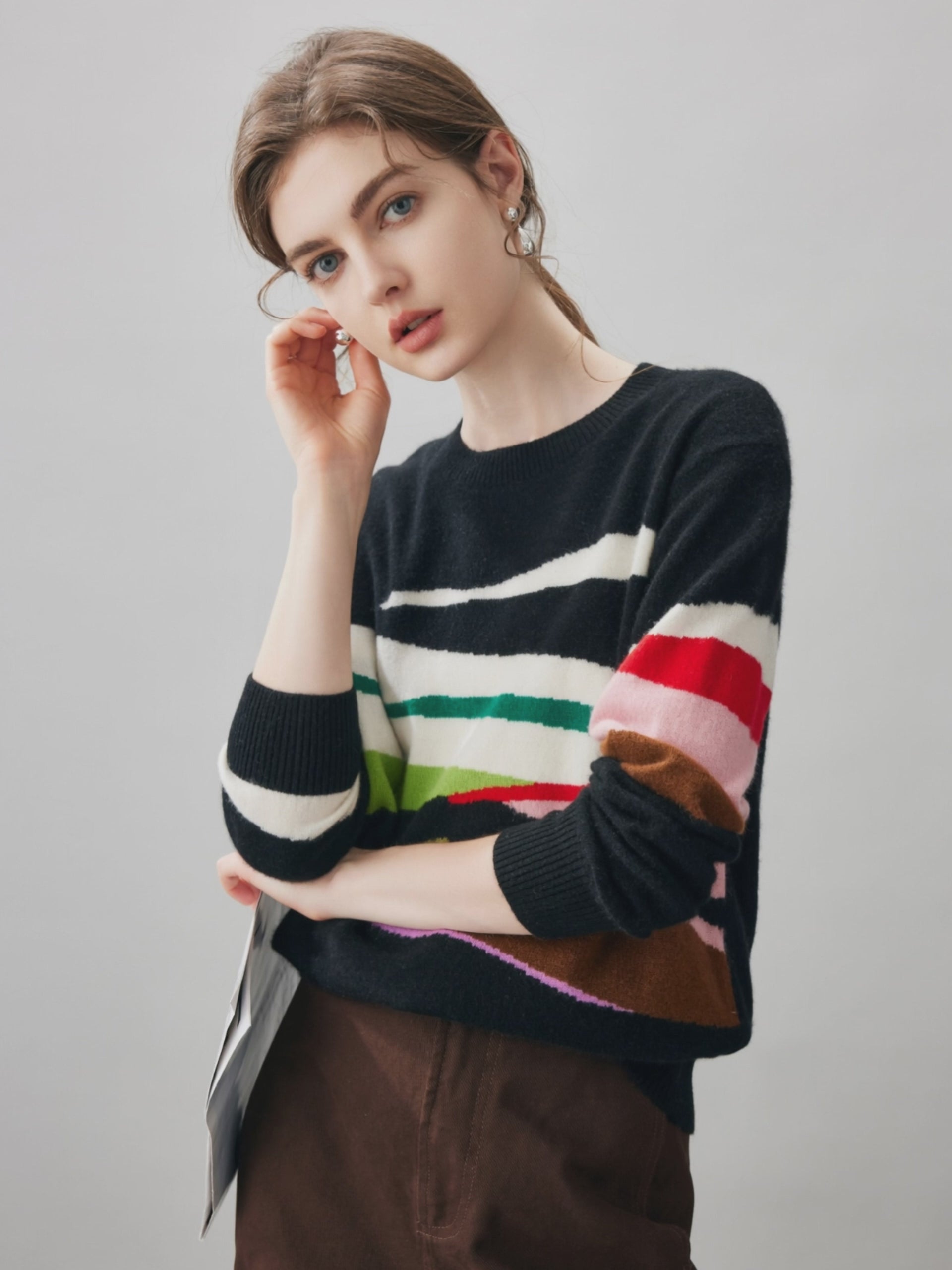 100% Cashmere Women's Abstract Pattern Round Neck Sweater