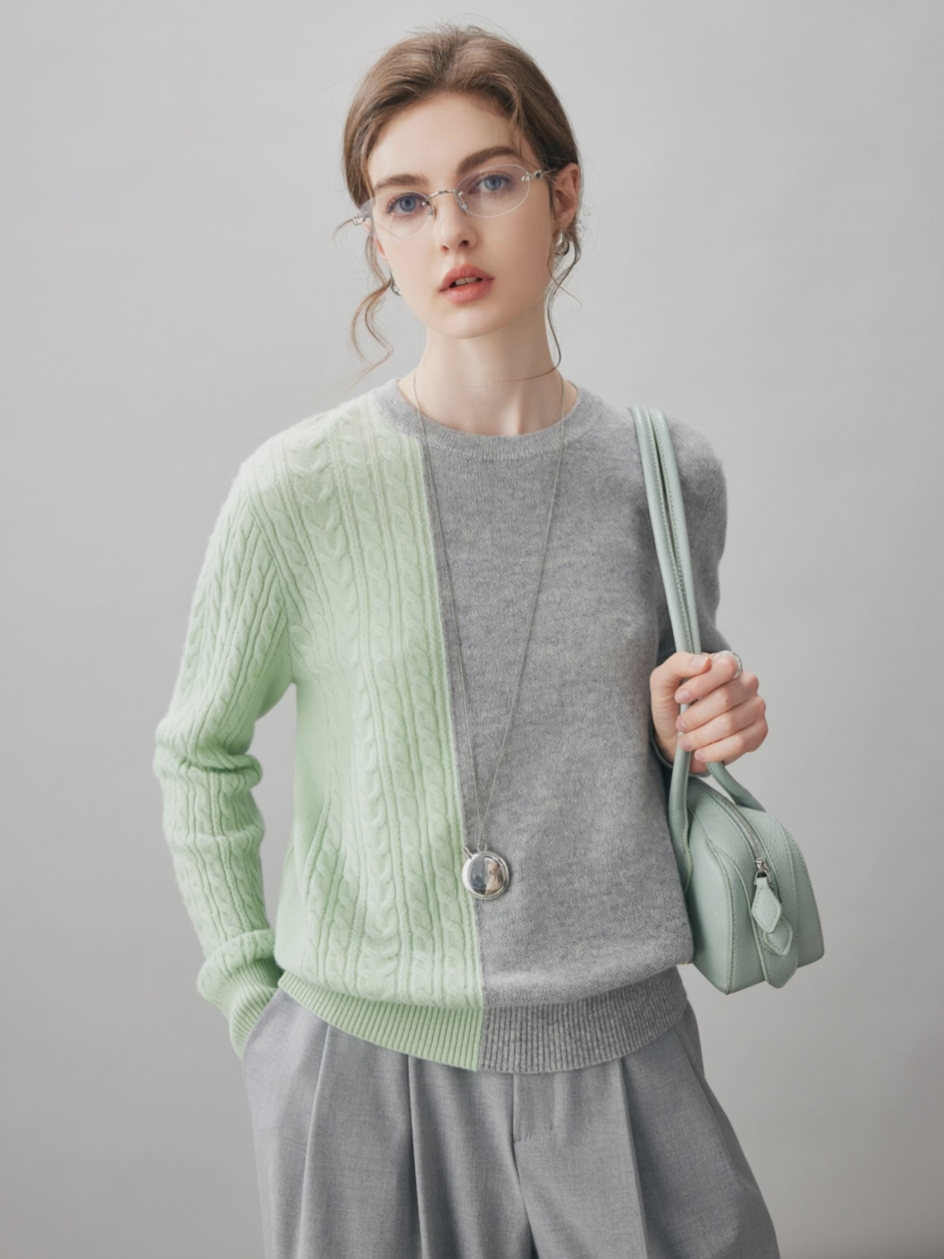100% Cashmere Women's Color Block Cable Knit Sweater
