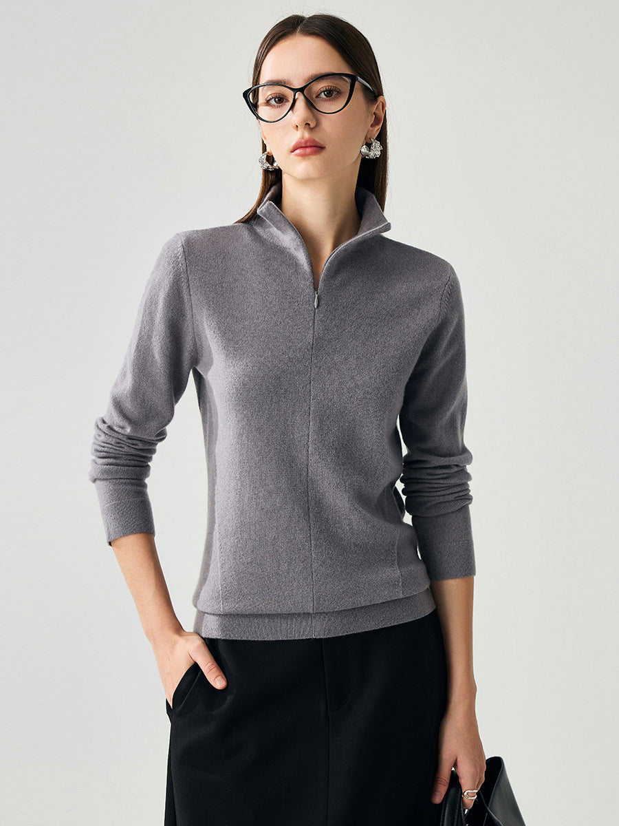 100% Cashmere Women's Half-Zip Mock Neck Pullover Sweater