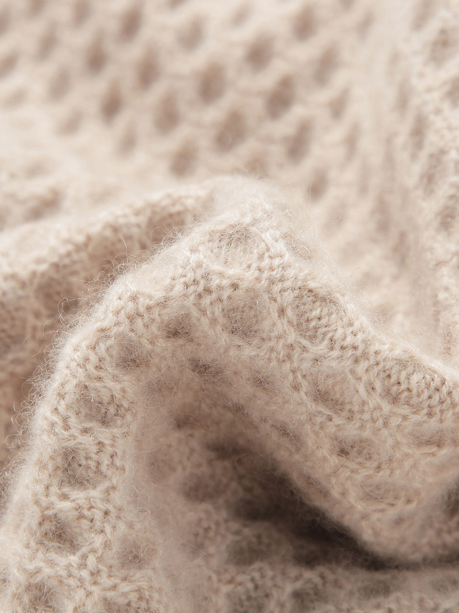This coat features a distinctive hollow lattice texture, adding a visually appealing layered effect. The intricate openwork design enhances the overall aesthetic, providing a sophisticated and elegant look.