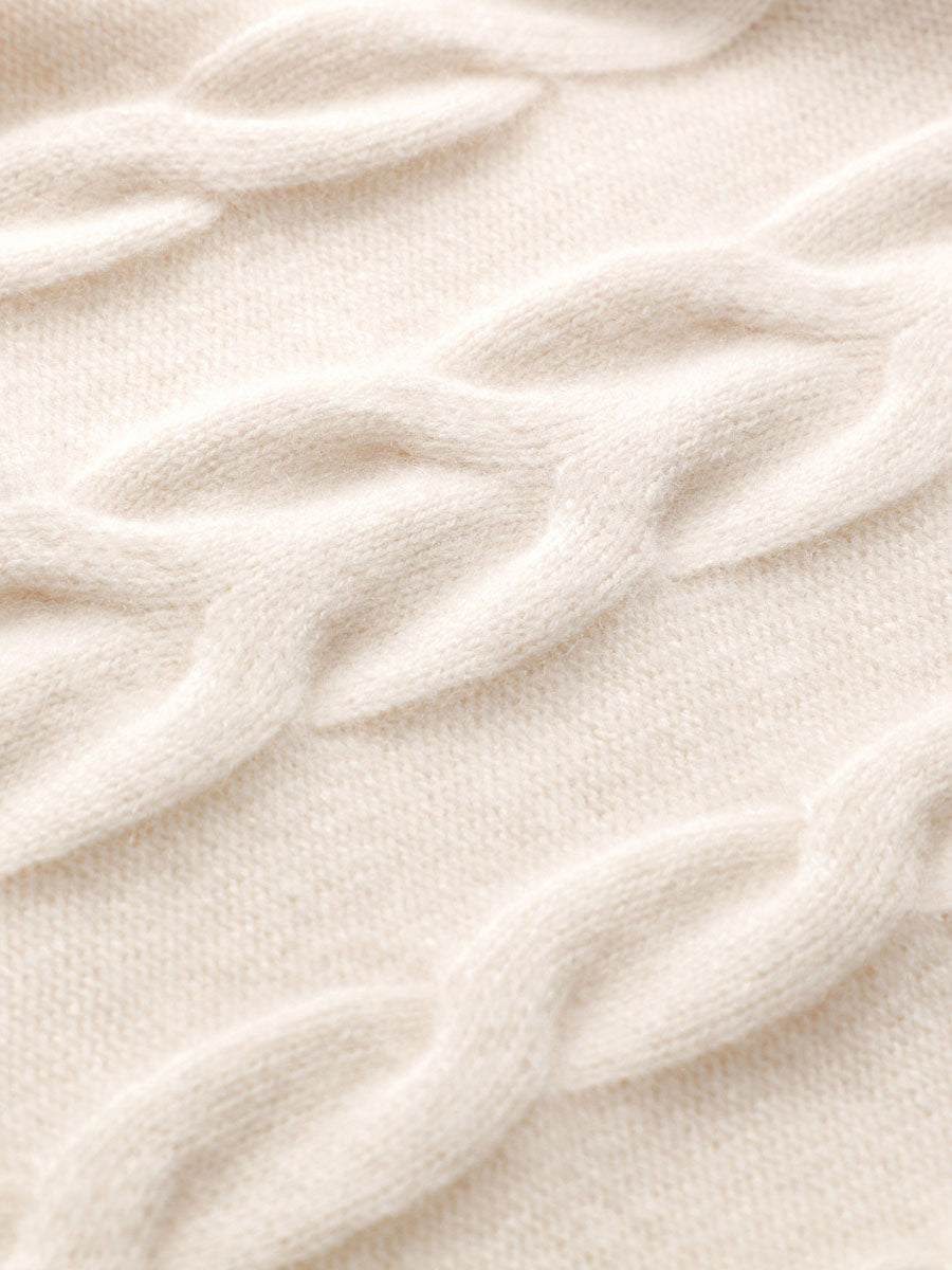 Stay warm and stylish with our 100% cashmere turtleneck cable-knit sweater. This elegant piece features a classic high-neck design, intricate cable-knit pattern, and ribbed hem and cuffs for ultimate comfort and fit.