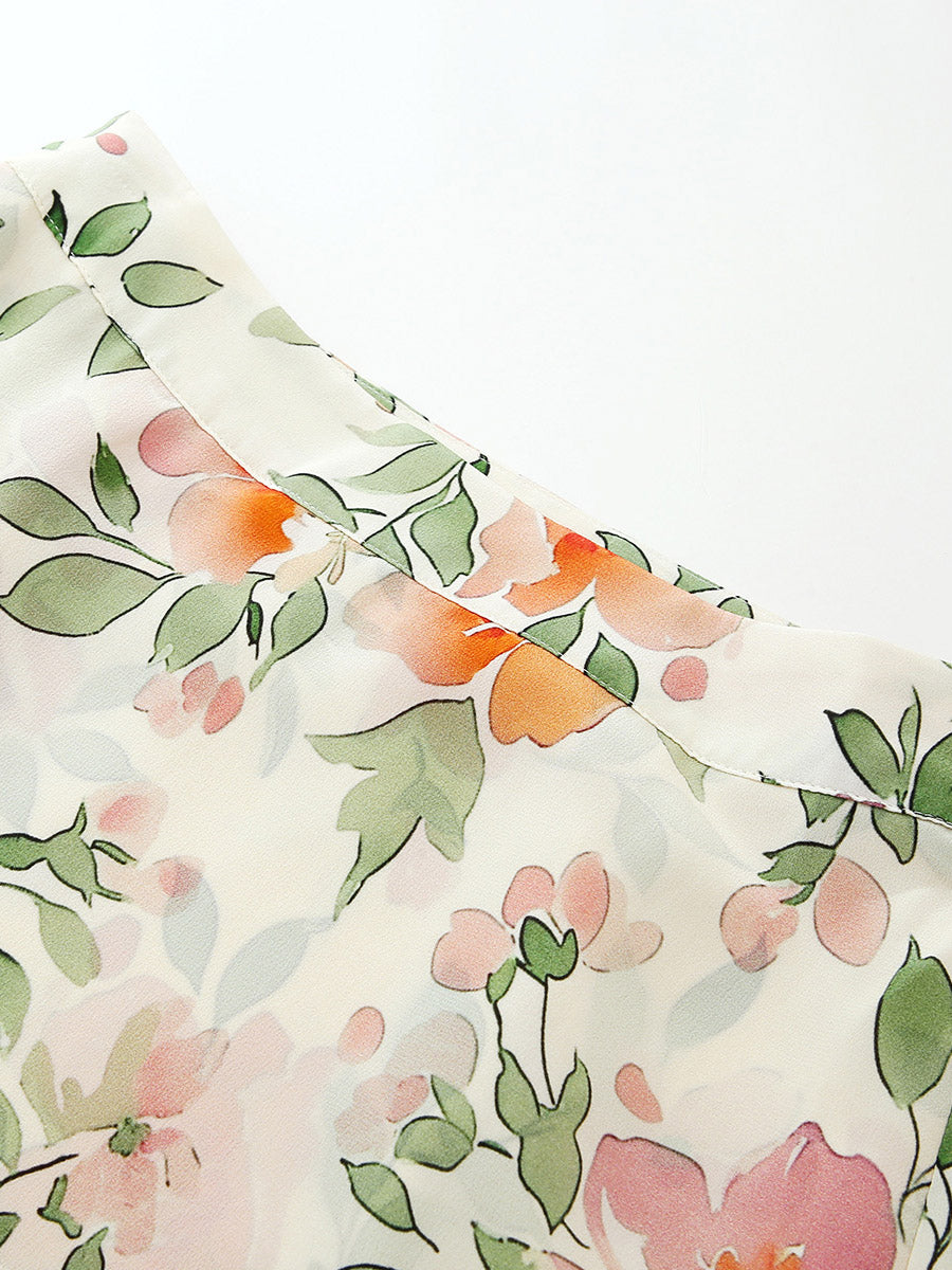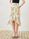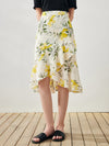 100% Mulberry Silk Women's Floral Ruffle Midi Skirt