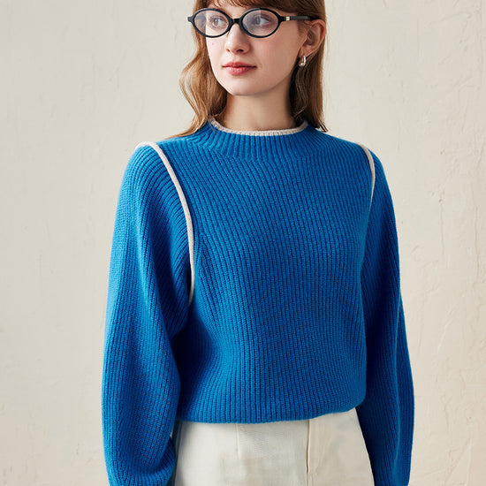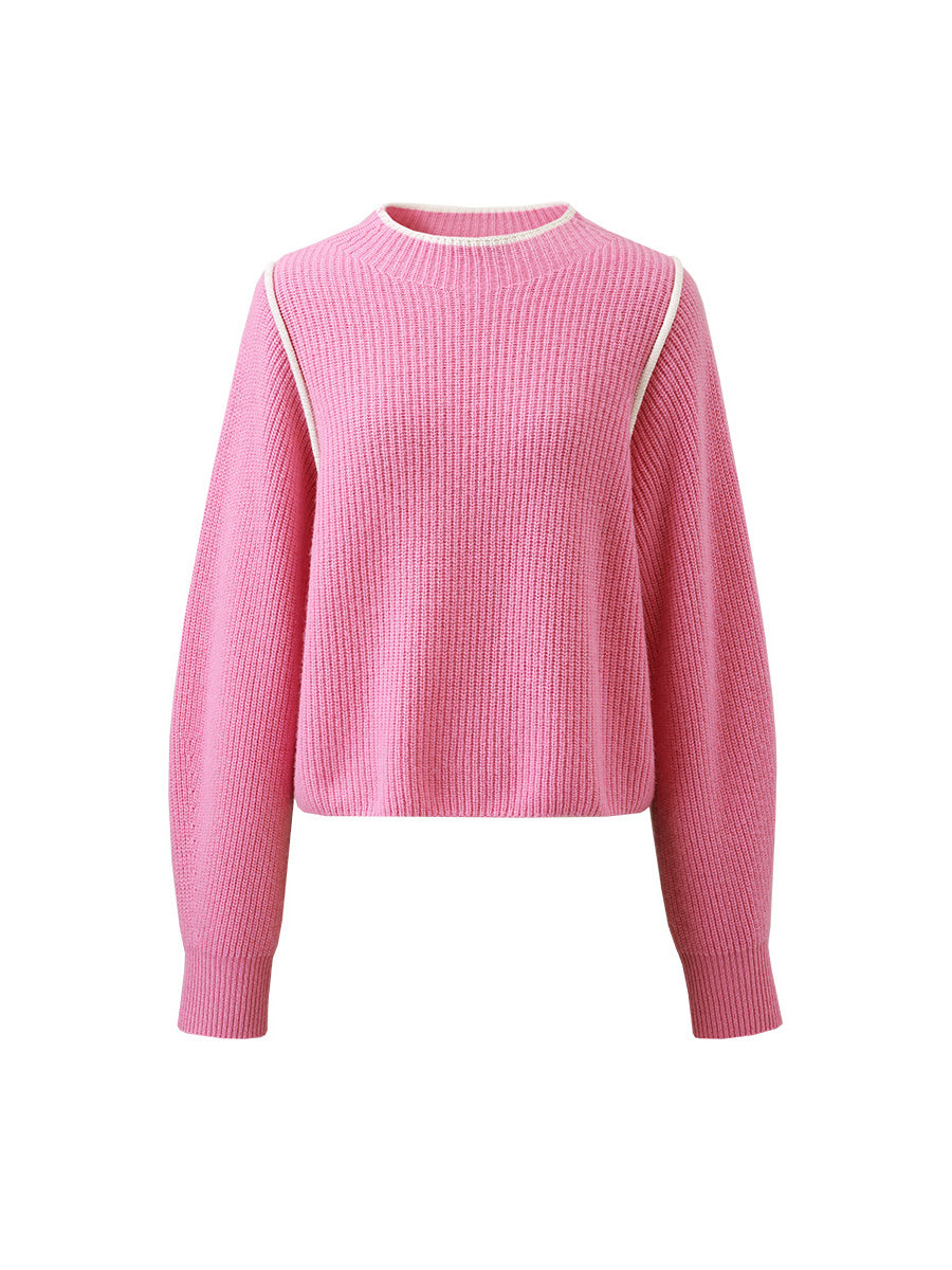 - Color Contrast Details: With chic white piping along the shoulder seams and neckline, this sweater stands out with a bold yet elegant color contrast.