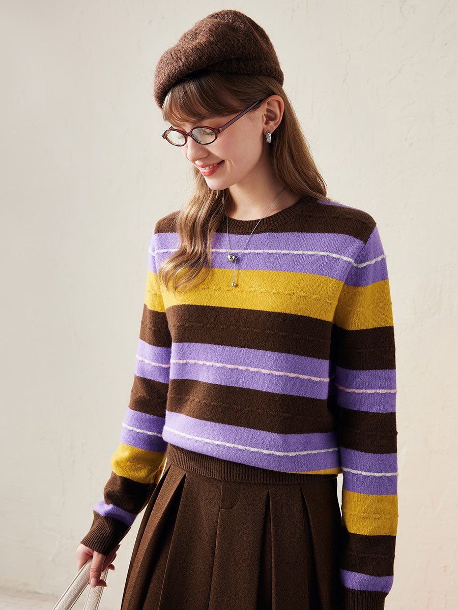 100% Wool Women's Cozy Striped Knit Sweater