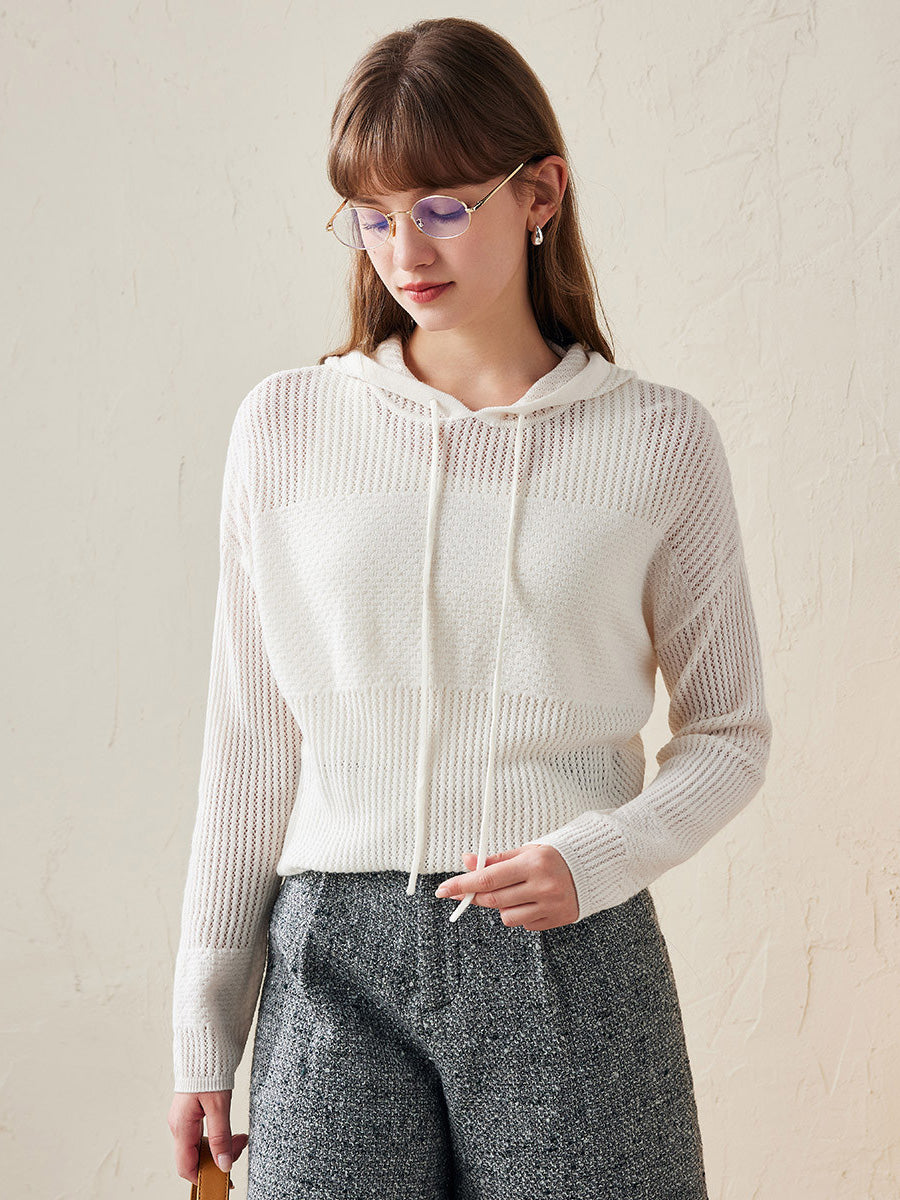 100% Wool Women's Sweater Extra Size Knit Hoodie