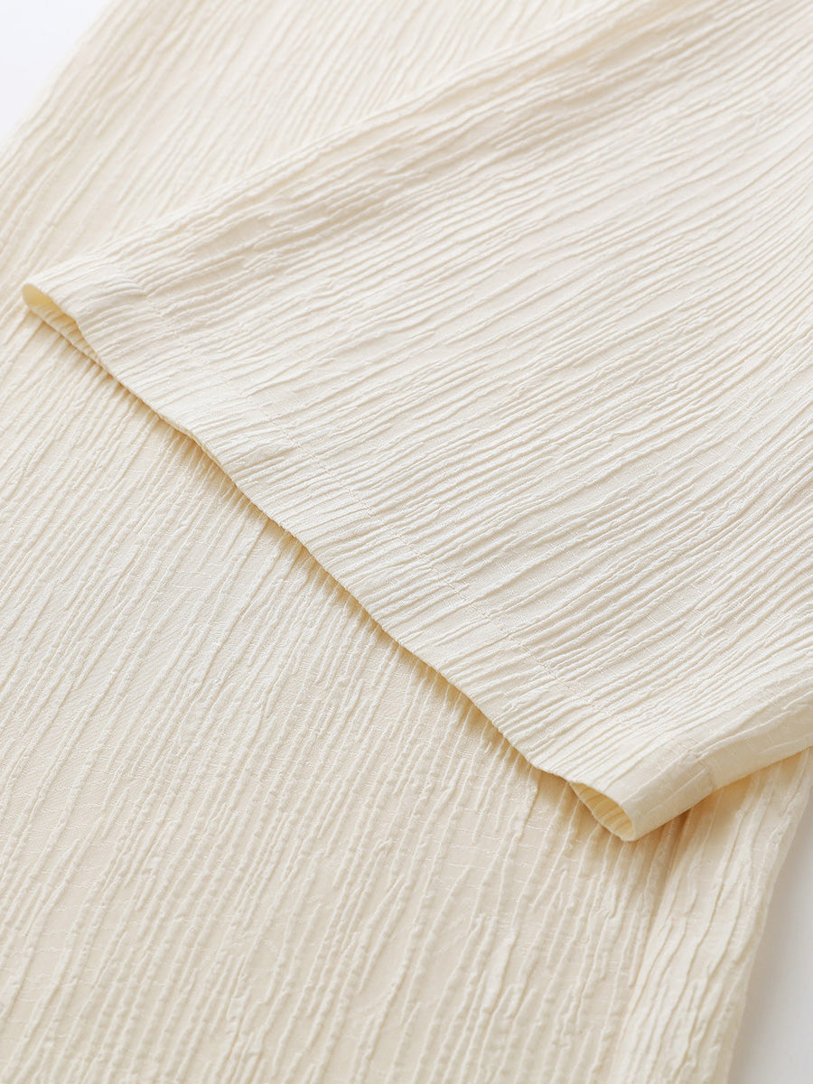 Elevate your wardrobe with these luxurious crinkled wide leg pants. Designed with both style and comfort in mind, these pants offer a relaxed fit that provides freedom of movement without sacrificing fashion.