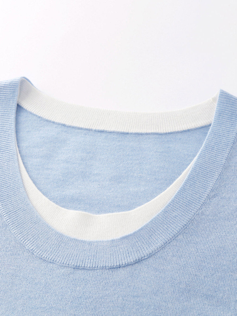 - Faux Layered Design: The tank top features a seamless faux layered look, where a contrasting white mock layer is subtly incorporated into the design at the neckline and bottom hem, offering a sophisticated yet casual vibe.