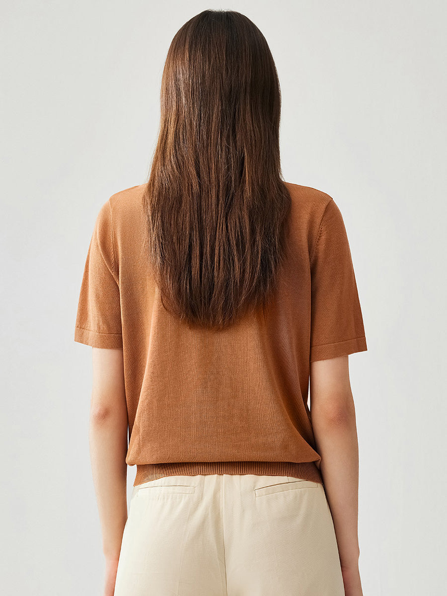 Women's Cotton Silk Jeweled Neckline T-Shirt