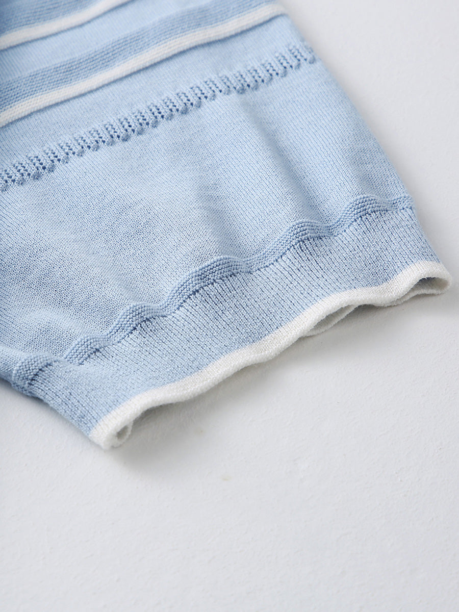 Elevate your wardrobe with this stylish and comfortable striped knitted T-shirt. Crafted with a soft and breathable fabric, this top ensures you stay cool and chic all day long.