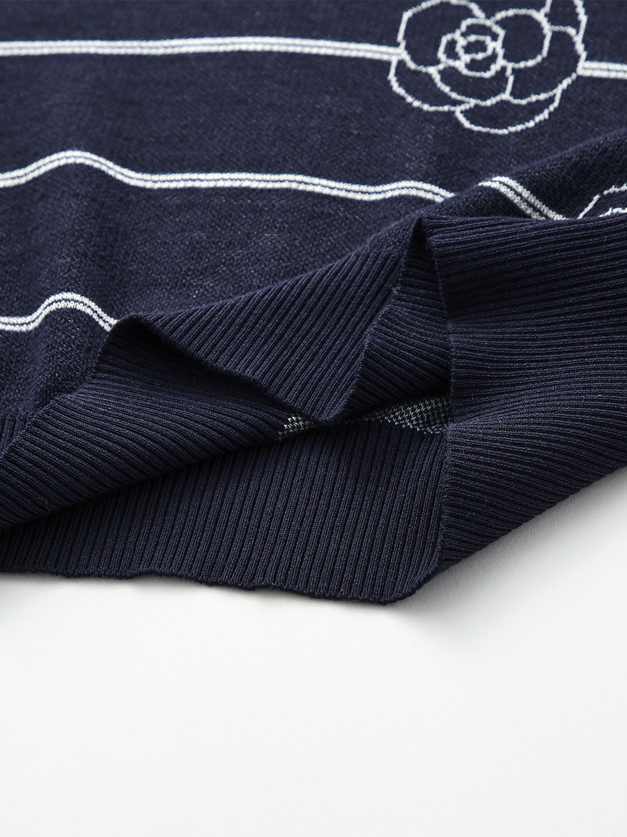 This striped floral knit t-shirt effortlessly combines comfort and style. Designed with delicate horizontal stripes and floral embroidery, it brings a touch of elegance to your casual look.